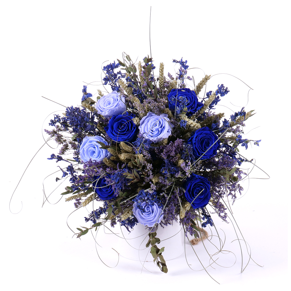 Give your loved ones dried bouquet of preserved roses in blue notes.
