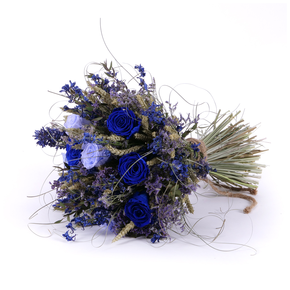 Dried bouquet preserved blue roses