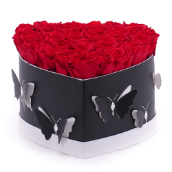 Put a smile on your loved one’s face with original butterfly heart box composed of 22 preserved red roses.