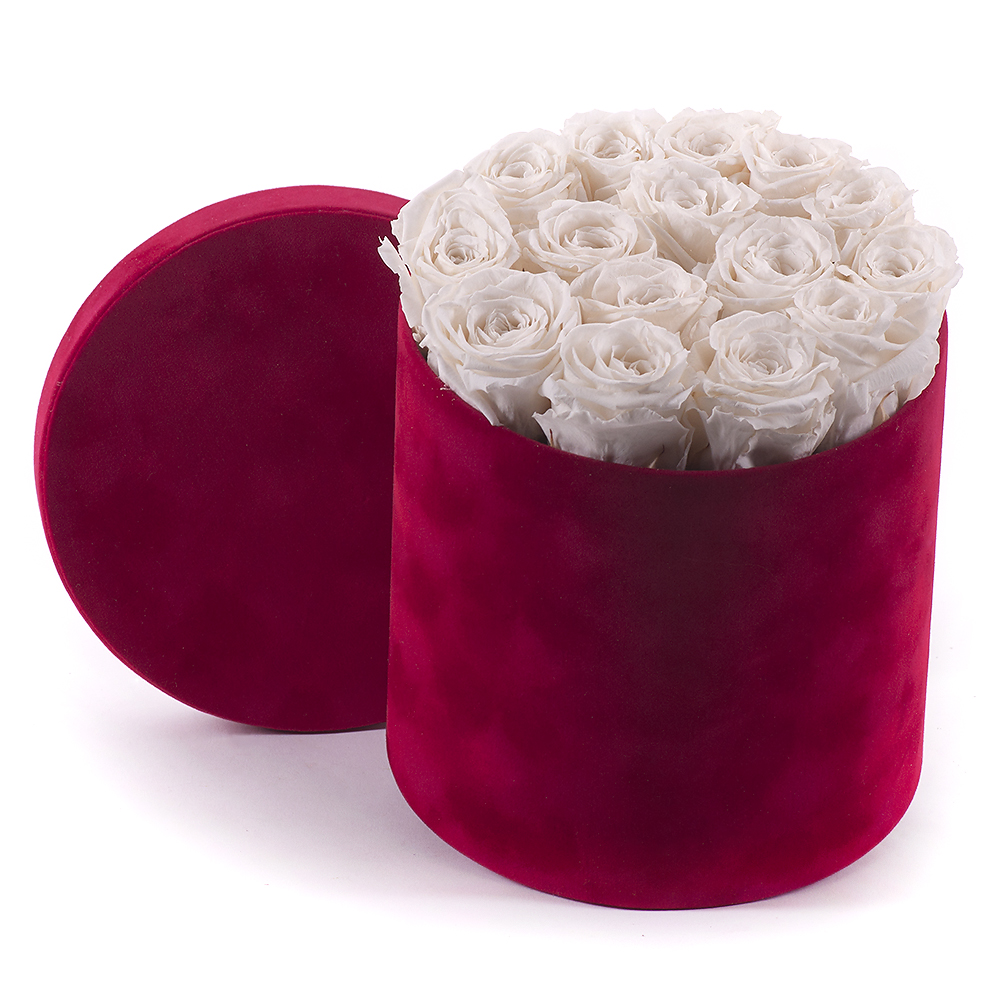 Surprise your beloved with suede red box filled with 15 preserved cream roses. Gift for ladies for a birthday or an anniversary. ... More